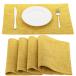 Senteria ランチョンマット布製 綿麻 マット 二層生地縫製 無地 和風 柔軟性 断熱 滑り止め お手入れ簡単 丸洗い キッチン 家庭用 レストラン用 4枚セット(イエロー)