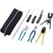●セット内容:(エビ)ミニ圧着工具HAK17MA2・(エビ)VVF線ストリッパーVA203A。●セット内容:(SK11)ペンチ175mm・(ベッセル)ボールグリップドライバー+2X100mm。●セット内容:(ベッセル)ボールグリップドライバー−5.5X100mm。●セット内容:(IPS)溝付きウォーターポンププライヤ190mmGR−190。●セット内容:(SK11)電工ナイフ全鋼、SK11コンベックス2mJIS付き。●収納ケース:ポーチ型ツールケース。