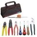 圧着工具/VA線ストリッパー/プラスドライバー/マイナスドライバー/ウォーターポンププライヤー/ペンチ/電工ナイフ/メジャー/ファスナー付バッグ