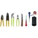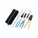 電工ドライバー(+)No.2(D-332-100)、マイナスドライバー(−)5.5(D-655-100)、ペンチ(P-43-175)、圧着工具(P-77)、ウォーターポンププライヤー(P-244)、電工ナイフ、布尺、ツールポーチ、技能試験対策ハンドブック