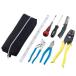 ・電工VAストリッパー、ペンチ(175mmサイズ)、圧着ペンチ、ドライバー2本(+2/-5.5 100mmサイズ)、折り畳み電工ナイフ、ウォーターポンププライヤー(150mmサイズ)、スケール