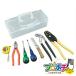 ・電工VAストリッパー、ペンチ(175mmサイズ)、圧着ペンチ、ドライバー2本(+2/-5.5 100mmサイズ)、折り畳み電工ナイフ、ウォーターポンププライヤー(150mmサイズ)、スケール