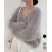 毛足の長いふわっとしたニット素材は肌触りが柔らかく、レトロでフェミニンな雰囲気を演出。