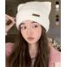 ふわふわとした肌触りの良い素材で仕上げた、可愛らしい印象の猫耳ニット帽子
