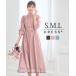 パーティードレス ワンピース 結婚式 披露宴 二次会 袖付き 長袖 Aラインワンピース ミモレ丈 フレアワンピース ウエスト切り替え ウエストゴム ラ