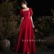 カラードレス 演奏会用ロングドレス レッド 二次会 披露宴 演奏会 発表会 コンサート ステージ ワンピースドレス Aライン スクエアネック パーティードレス