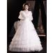 ウエディングドレス Aラインドレス レース フリル レトロ 昭和ドレス パフスリーブ 長袖 ハイネック 編み上げ 王道 正統派ドレス 前撮り ドレス