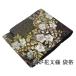黒色地に鼠色や草灰・ボルドー色などの掬い織りと多色や金銀糸で辻が花模様が柄付けされています。