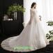 ウェディングドレス 二次会 結婚式 披露宴 ブライダル ロングドレス 花嫁 ウエディングドレス Aラインドレス オフホワイト 編み上げ トレーン ゴールド刺繍