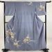 訪問着 身丈159.5cm 裄丈64.5cm M 袷 落款あり 枝梅 貝桶 青灰色 正絹 秀品 中古