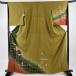 訪問着 身丈163.5cm 裄丈65.5cm M 袷 梅 鳳凰 刺繍 金銀彩 茶緑色 正絹 秀品 中古