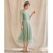 商品名:ワンピース ドレス 総レース Aライン ミモレ丈 結婚式 披露宴 パーティードレス