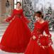 ウェディングドレス 白 赤 カラードレス 結婚式 花嫁 前撮り 長袖 プリンセス 秋冬 ロングドレス ブライダル 二次会 パーティードレス 披露宴 イブニングドレス
