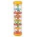 カラフルなビーズが入った透明なスティックは、上下にひっくり返すとビーズがザザーと流れ、音と動きの不思議に赤ちゃんがじっと見入ってしまうと評判の楽器です。