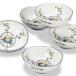 一つとして同じものがない手描きの味わいが魅力で、白磁との調和が格調高い趣を醸し出しています。煮物や和え物、汁気のあるものにも使いやすく、日々の食卓を季節感と華やぎで満たす、価値ある一揃えです。