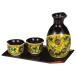 赤を使わず、緑・黄・紫・紺青の四彩を用いた九谷焼の技法「吉田屋」の重厚な酒器揃です。盆も付いており、来客用にもおすすめのお品です。