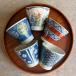 地紋や色絵、花絵で構成された五文様。口径が大きくドリンクカップの他、蕎麦猪口、ヨーグルト他デザートカップや野菜スティックなどちょっとしたメニューにも。
