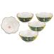 地紋や色絵、花絵で構成された五文様。口径が大きくドリンクカップの他、蕎麦猪口、ヨーグルト他デザートカップや野菜スティックなどちょっとしたメニューにも。