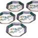 古九谷の伝統的な花鳥模様が美しく描かれた八角形の皿揃え(5枚セット)です。