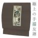 【 中古 】 名古屋帯 正絹 こげ茶 文字 茶道具 塩瀬 手描き友禅 リサイクル カジュアル シンプル お洒落 仕立て上がり 染め帯 九寸 No.i6-2428