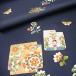 正倉院御物由来のペルシャ風の草花や有職文様を散らした京友禅の附下です。地色は落ち着いた濃紺です。友禅師は伝統工芸士の山内偉仙氏。生地は「伊と幸」製の駒雲井。発色が良く、軽やかな生地です。