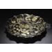 橘皮紋の漆地に真金で龍紋を描いた葵瓣盤。華やかで格調高い美術工芸品です。