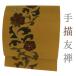 【 中古 】 名古屋帯 中古 手描友禅 正絹 縮緬 花唐草 黄土色 カジュアル お洒落 仕立て上がり 九寸 No.i6-2446