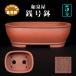 常滑の老舗・和泉製陶所が手がける「銭号」ブランドの盆栽鉢。中国中渡の名窯「銭号りん製」の款を使用しおており、戦前に中国鉢写しをつくった際に落款まで写した名残りでこのブランドが生まれた。素朴な土目は時代が乗りやすく、デザインも洗練されており使い勝手の良さから人気が高い。