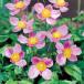 初音は郡上市「初音園芸」のオリジナル秋明菊。シュウメイギク初の絞り咲き品種は極めて稀な花色!美しいピンクと白の絞り咲き花が見応えのあるシュウメイギクで、かすり状の斑入り葉も魅力。コンパクトにまとまり、特に鉢植えでの観賞におすすめ。チャボシュウメイギクからの選抜種。