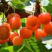 「高砂」の枝変わり種、果汁多く、甘味は中位(糖度17度程度)酸味は多く食味濃厚。平均果重10gにもなり、果幅は3cm前後と極大果で玉揃いも良い。果形は短心臓系で、果皮は黄色赤斑に着色し、着色は良好である。他の品種の受粉樹としても利用できます。
