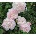 花名は「シルキー」という意味のフランス語で、「シルクのような」の意味。シルクのようなオフホワイトの優しげな色合い。ころんとしたカップ咲きから、くしゃくしゃ感のある愛らしいロゼット咲きになります。咲きはじめに花弁の先は紅色がうかび、秋花では咲いたのちも色残りし、蹴込み斑として美しく花を彩ります。 花付きはとても優秀で、細めの枝先にも花を咲かせます。初冬まで咲く四季咲き。さわやかさと甘さを持つ、スズランの香りを感じるダマスクとフルーツの芳香があります。