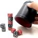 黒と赤のサイコロが各色5個ずつ入り、ダイススタッキング用のお洒落なブラックレザーカップがセットになっています。更に練習用の透明カップが付いているので、カップを動かすコツを習得するのに最適*