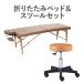 31065-set-1:折りたたみ マッサージベッド スツール セット ライトブラウン
