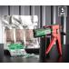 専用ガン、専用チップを使い、押し出すだけで2液が混ざり硬化します。