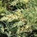匍匐性の低木で、葉に乳白色の斑が入りグラデーションがとても美しい品種です。成長はやや遅めで、枝はやや斜め上方に伸び、若木の時は枝葉はやや粗い印象ですが、成長するとよく詰まった樹形になります。夏場に強い日差しで白斑の部分が焼けることがありますが、成長して樹勢が増すとダメージも受けにくくなります。