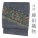 袋帯 藤田織物 真綿紬 正絹 紺 灰紺 唐花 仕立て上がり カジュアル 西陣織 着物 No.6-2245