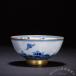 茶碗の口縁には水波文が描かれ、胴の部分には捻文の中に、幾何学模様と山水図が交互に描かれています。