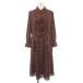 未使用品 ポールスチュアート PAUL STUART ラインドットワンピース ひざ丈 長袖 ラッフル タグ付き 4 ワイン 白 K1J06-621 レディース