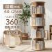 (天然木 回転式本棚 回転 回る 3段 4段 5段 無垢材 本収納 大容量 多目的ラック 絵本ラック 収納ラック オープンシェルフ 子供 棚 飾り棚 雑誌 小説 教科書 書類 CD DVD フィギュア アクリルスタンド おもちゃ A4 A4対応 整理整頓 推し活 推し活収納 組立簡単 人気 おすすめ 送料無料 WEIMALL)