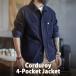 コーデュロイジャケット メンズ 4ポケット ワークジャケット おしゃれ カバーオール アメカジ メンズジャケット シャツジャケット コーデュロイシャツ 厚手