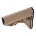 Enhanced Polymer Stock Compact(EPS-C)ストックはEPSと比較して、よりコンパクトでシンプルなストックを選好するユーザー向けにデザインされています。とくにEPSで大きな位置を占めていた大容量のコンパートメント/ストレージをオミットすることでコンパクト化に成功しています。EPS-Cは必要最小限の機能、スマートデザイン、軽量性を重視しつつ、材質にデュポンザイデルポリマーを採用しているため非常に耐久性が高くなっています。不要な機能を極力排しながら、快適な肩付けとグリッピングを実現するラバーバットパッド、アンビ仕様のメタル製QDスリングソケットなどストックとしての本質的な機能を備えています。スリムな形状のストックレバーはストックのスマートな外観を維持しつつ非常に快