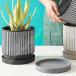 植木鉢 鉢植え 陶器製 シンプル 北欧 底穴あり 受皿付き 通気性 インテリア 室内 卓上 事務室 丸形 ストライプ 卓上装飾品 ガーデン 置物 ins風 ホテル