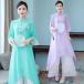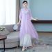 ワンピース チャイナ服 民族衣装風 レディース ロング KNK(株) チャイナドレス 2点セット シフォン 民族風 刺繍 五分袖 ガウチョパンツ ワイドパンツ おしゃれ