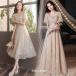 イブニングドレス ベージュ パフスリーブ パーティードレス ロングドレス 星柄 オシャレ キレイめ 発表会ドレス 演奏会ドレス Aライン ロング丈