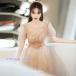 イブニングドレス シャンパン色 ロングドレス パフスリーブ プリンセスドレス 発表会ドレス パーティードレス 結婚式ドレス 二次会ドレス 成人式ドレス Aライン