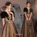 イブニングドレス 黒 ベロア ベルベット 発表会ドレス ロングドレス スパンコール キラキラ キレイめ パフスリー ブフェミニン 結婚式ドレス パーティードレス