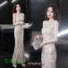 マーメイドドレス イブニングドレス スパンコール キラキラドレス ワンショルダー フリンジ ビーズ キレイめ 発表会ドレス ロングドレス スリット タイトドレス