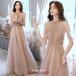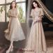 イブニングドレス ベージュ パフスリーブ パーティードレス ロングドレス 星柄 オシャレ キレイめ 発表会ドレス 演奏会ドレス Aライン ロング丈 結婚式ドレス