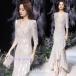 イブニングドレス ベージュ パフスリーブ パーティードレス ロングドレス 星柄 オシャレ キレイめ 発表会ドレス 演奏会ドレス Aライン ロング丈 結婚式ドレス