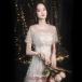 イブニングドレス キラキラドレス スパンコール ラインストーン キレイめ 発表会ドレス ロングドレス パーティードレス シャンパン色 結婚式ドレス 二次会